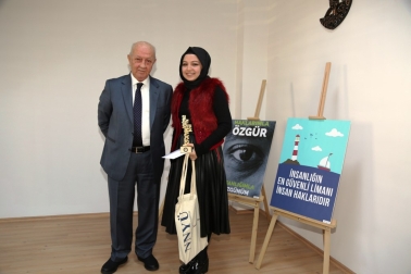 Yarışma Komisyonu Başkanı Prof. Dr. Hülya Uçar törende yaptığı konuşmada yarışma hakkında bilgiler verdi. Prof. Dr. Hülya Uçar, “Toplumda ve üniversitemiz öğrencileri arasında insan hakları bilincinin geliştirilmesi, Birleşmiş Milletler İnsan Hakları Evrensel Bildirisi ve bu bildirinin kabulünün 70. yılı konusunda farkındalık oluşturulması için slogan ve afiş yarışması düzenlenmiştir. Slogan yarışmasına 20 öğrencimiz 57 slogan ile katılmıştır.