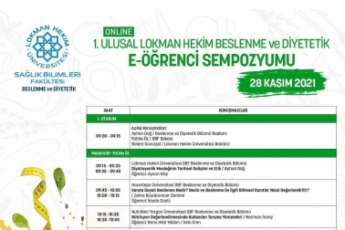 28.11.2021 tarihinde '1. Ulusal Lokman Hekim Beslenme ve Diyetetik E-Öğrenci Sempozyumu' gerçekleştirilecektir. Sayın Dekanımız ve Bölüm Başkanımız Prof. Dr. Neriman İNANÇ ve 4. sıınf öğrencilerimizden Banu Hilal Yeldan ve İrem Eren 'Nütrisyon Değerlendirmesinde Kullanılan Tarama Yöntemleri' ni anlatacaklardır. Sayın hocamız ve öğrencilerimize başarılar diliyoruz.